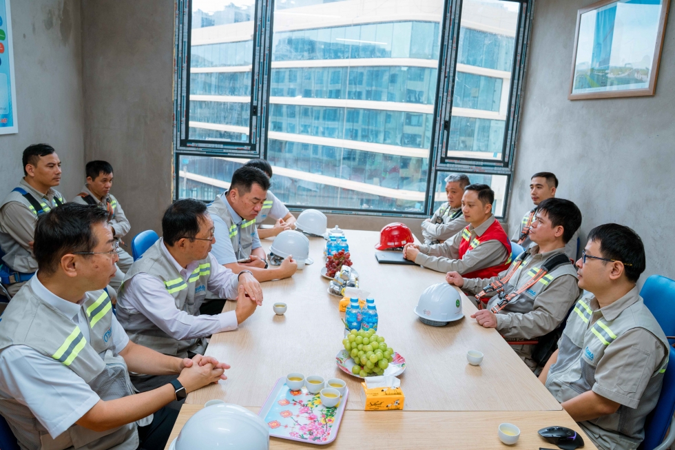 Next, the delegation visited The Senique Ocean Park, located in the eastern urban area of Hanoi. The project is considered a “highlight” in Sigma’s 2025 portfolio, notable for its large scale, technical complexity, and tight schedule. On-site, Sigma engineers presented the MEP construction process using BIM technology and an integrated management system that minimizes errors and enhances efficiency. Mr. Toshinori Abe was visibly impressed by the professionalism and safety compliance of the Vietnamese engineering team, who worked diligently under extreme conditions, with temperatures reaching 50°C.