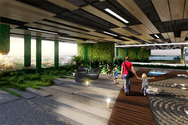 Ngoài bể bơi ngoài trời tạo cảm giác thư thái, dự án còn được thiết kế 3 khu vườn nhằm tạo thêm nhiều không gian xanh thư giãn trong lòng thành phố. Theo đó, một vườn treo được nối giữa 2 tòa tháp, giúp phủ xanh tầm nhìn của cư dân dù ở bất kỳ đâu trong tòa nhà. Vườn treo 2 sẽ được thiết kế bên khu vực chung cư để tăng tiện ích cho cư dân sinh sống với đài phun nước, lối đi bộ, chạy bộ và các khu vực tiện ích khác cho cư dân. Trên tầng thượng của tòa nhà cũng được thiết kế một khu vườn sinh thái thư giãn kiểu Nhật, nhằm phục vụ tối đa nhu cầu nghỉ dưỡng của cư dân.