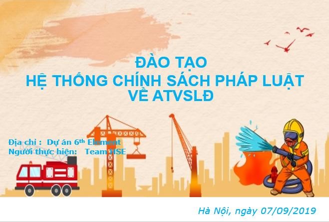 Là một trong những dự án tiên phong trong việc đào tạo nội bộ, với mục tiêu tăng thêm hiểu biết về hệ thống chính sách An toàn vệ sinh lao động (ATVSLĐ), nắm bắt được các quy định của pháp luật về công tác ATVSLĐ và áp dụng thực tiễn tại công trường; ngày 07/09/2019, The 6th Element đã chính thức triển khai chương trình huấn luyện, đào tạo tại dự án.