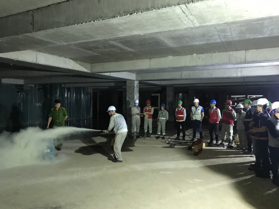 Buổi diễn tập đã diễn ra thành công, tốt đẹp. Dưới sự hướng dẫn của Cảnh sát PCCC số 1, CBNV tại dự án đã có thể sử dụng bình bột, bình C02 để dập tắt đám cháy và biết cách xử lý nhanh các tình huống có thể xảy ra.