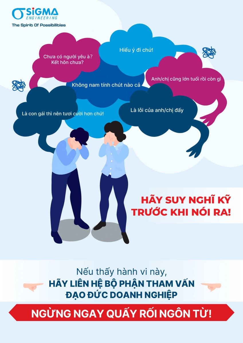 Tại Sigma, các nội dung về phòng chống quấy rối ngôn từ và thực hành giao tiếp chuẩn mực được phổ biến rộng rãi đến toàn thể nhân viên. Những buổi thảo luận nội bộ được tổ chức nhằm giúp mọi người hiểu rõ hơn về ranh giới giữa góp ý mang tính xây dựng và lời nói mang tính xúc phạm, đồng thời khuyến khích mỗi cá nhân suy nghĩ kỹ trước khi nói ra.