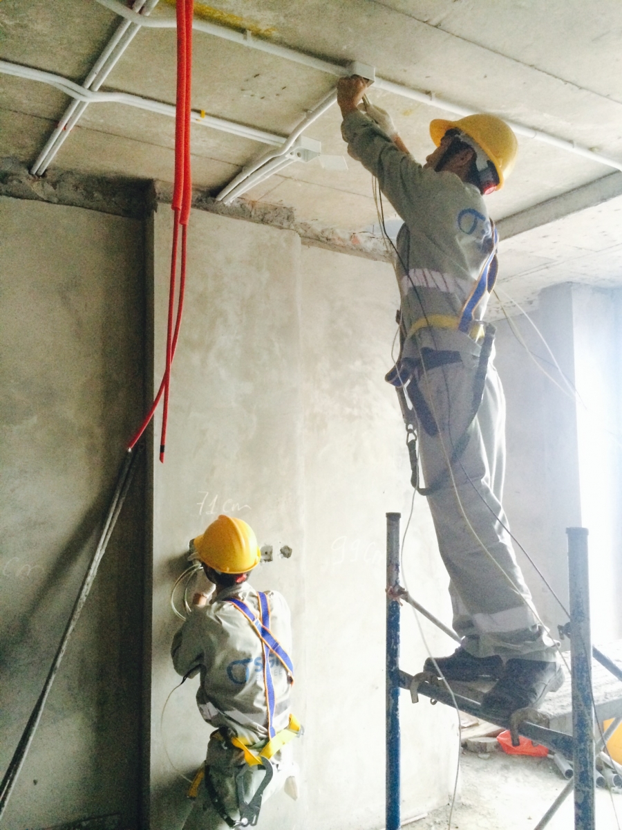 - Thi công đấu nối điện nhẹ trong phòng khu căn hộ tầng 10-16