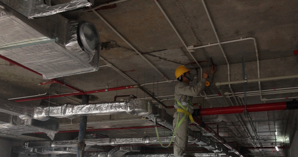 Thi công ống gió, ống cấp nước tháp văn phòng